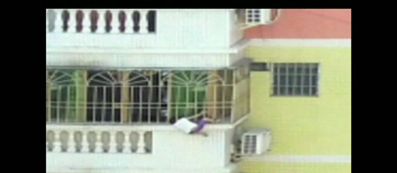 No sul da China, um menino de quatro anos foi salvo quando estava preso na grade de segurança de uma sacada do sexto andar de um prédio.