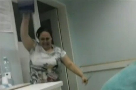 Ela estava sem avental, andava agitada pelos corredores do hospital e gritou com uma enfermeira.